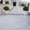 Sua aplicação é feita de forma artesanal, peça por peça, criando padrões geométricos e artísticos que valorizam qualquer ambiente. Além do apelo estético, o material oferece alta durabilidade, superfície antiderrapante e baixa manutenção, sendo uma pedra ideal para calçadas, praças, jardins, áreas externas residenciais e comerciais, fachadas e detalhes decorativos.