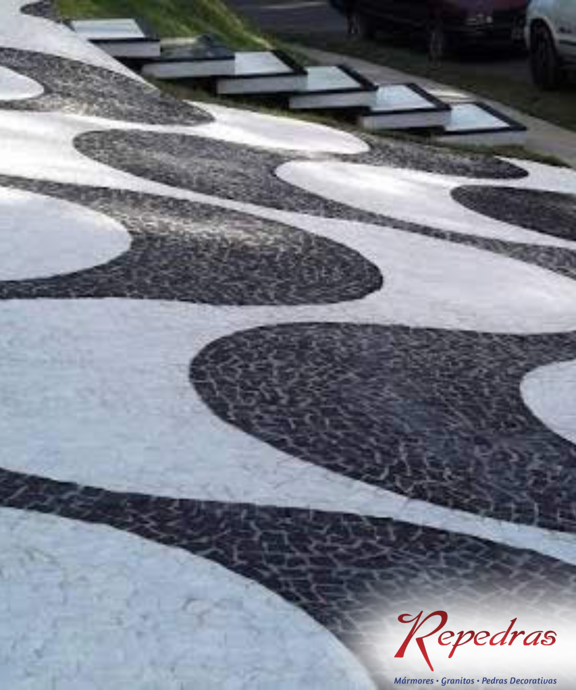 O Mosaico Português Preto, ou Calçada de Copacabana, destaca-se pelo contraste intenso que valoriza qualquer composição.