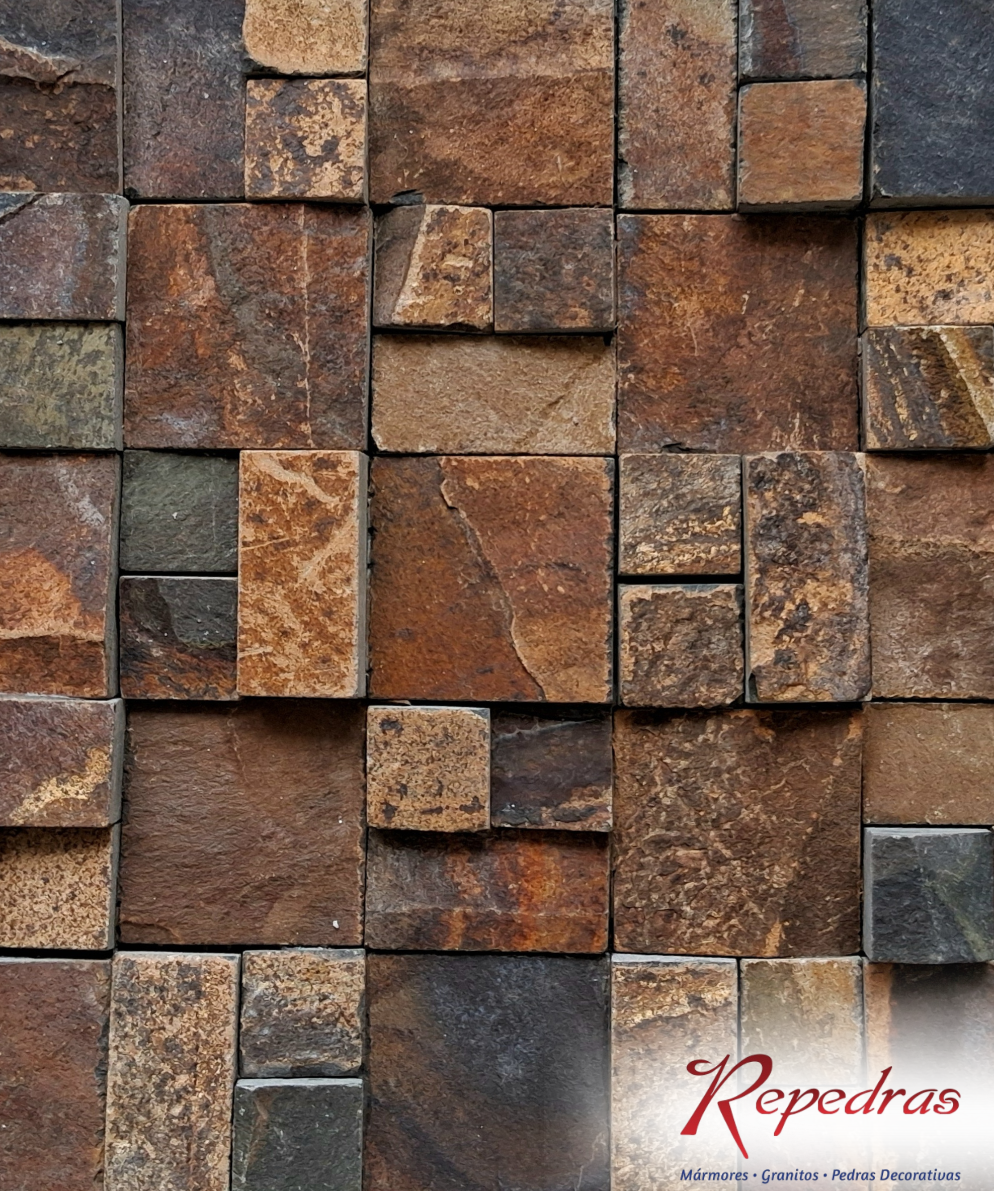 Fornecida em telas nos tamanhos 3×3 cm, 3×6 cm e 6×6 cm, a Pedra Ferro se destaca pelos tons intensos que variam entre marrom, ferrugem e dourado, criando um efeito rústico e elegante.