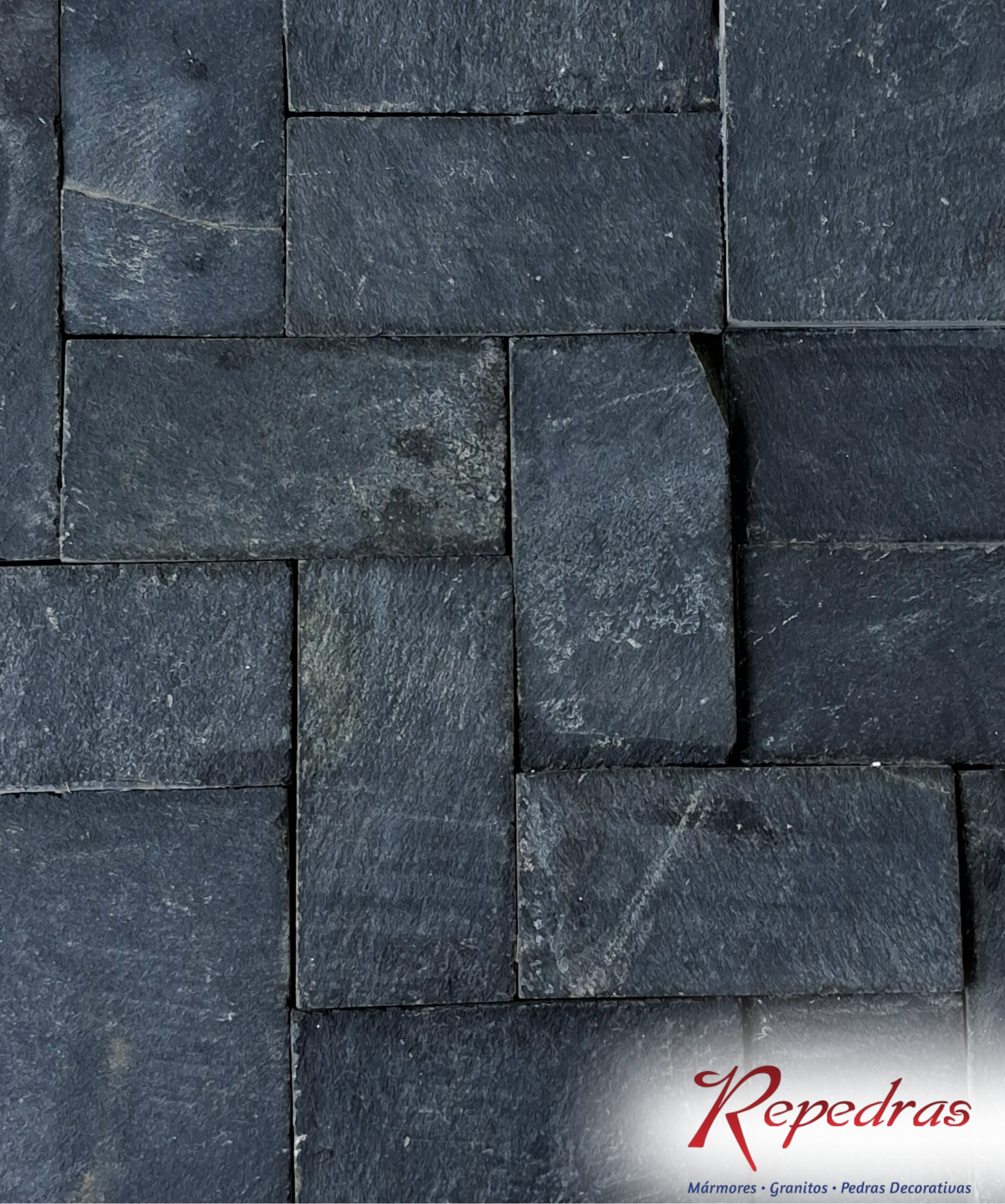 A Pedra Ferro Preta Telada é formada por fragmentos naturais de basalto ou ferro, assentados em malha (telado), garantindo praticidade na instalação e acabamento uniforme. Disponível em 5×10 cm e 10×10 cm.