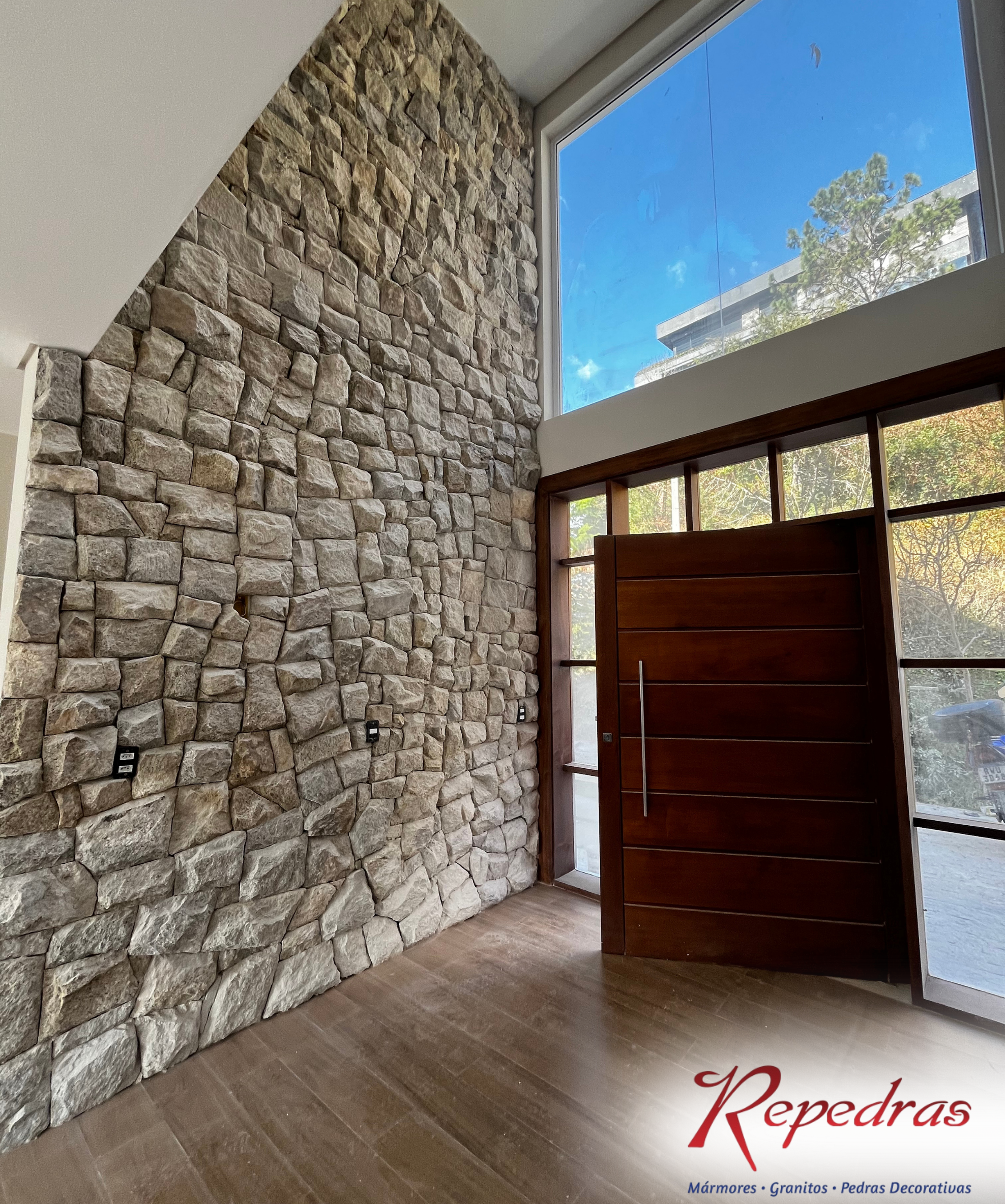 A Pedra Madeira Cinza Clara em Caco combina beleza rústica e resistência, ideal para quem busca naturalidade e estilo em cada detalhe.